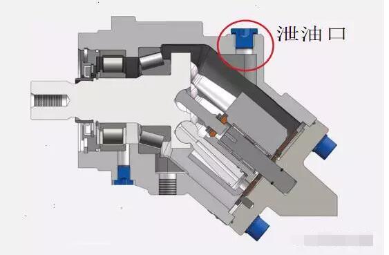 下圖是M系列彎軸馬達(dá),是屬于柱塞馬達(dá)的一種。高壓油進(jìn)入馬達(dá)柱塞腔后,液壓油也會通過轉(zhuǎn)子與配油盤等部件向殼體內(nèi)滲油。這就是馬達(dá)的內(nèi)泄油,內(nèi)泄油會潤滑軸承及其他摩擦副,但是過多的液壓油聚集在殼體內(nèi)會增加殼體內(nèi)部的壓力,直接沖壞軸端油封,甚至?xí)锉瑲んw。